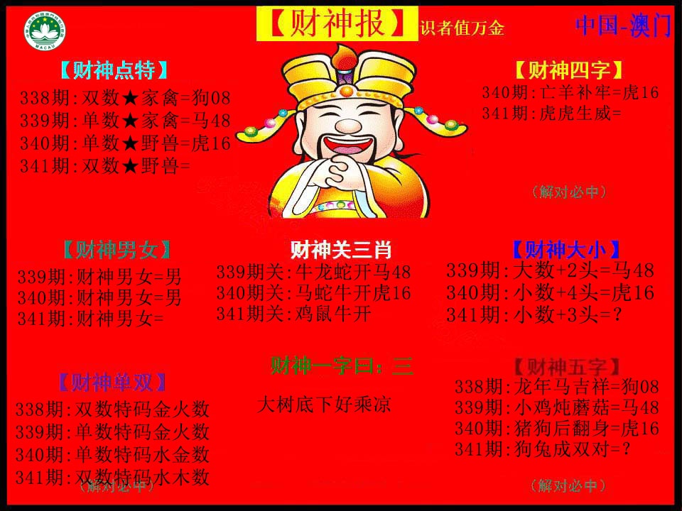 341期:澳门六合彩彩圖信封【红财神报】每期自动更新