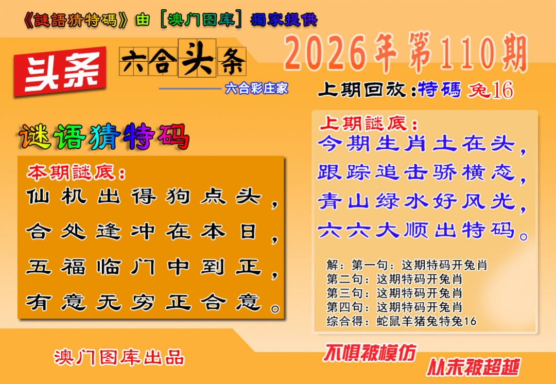 110期: 澳门六合彩 【白姐平特一肖】长期免费